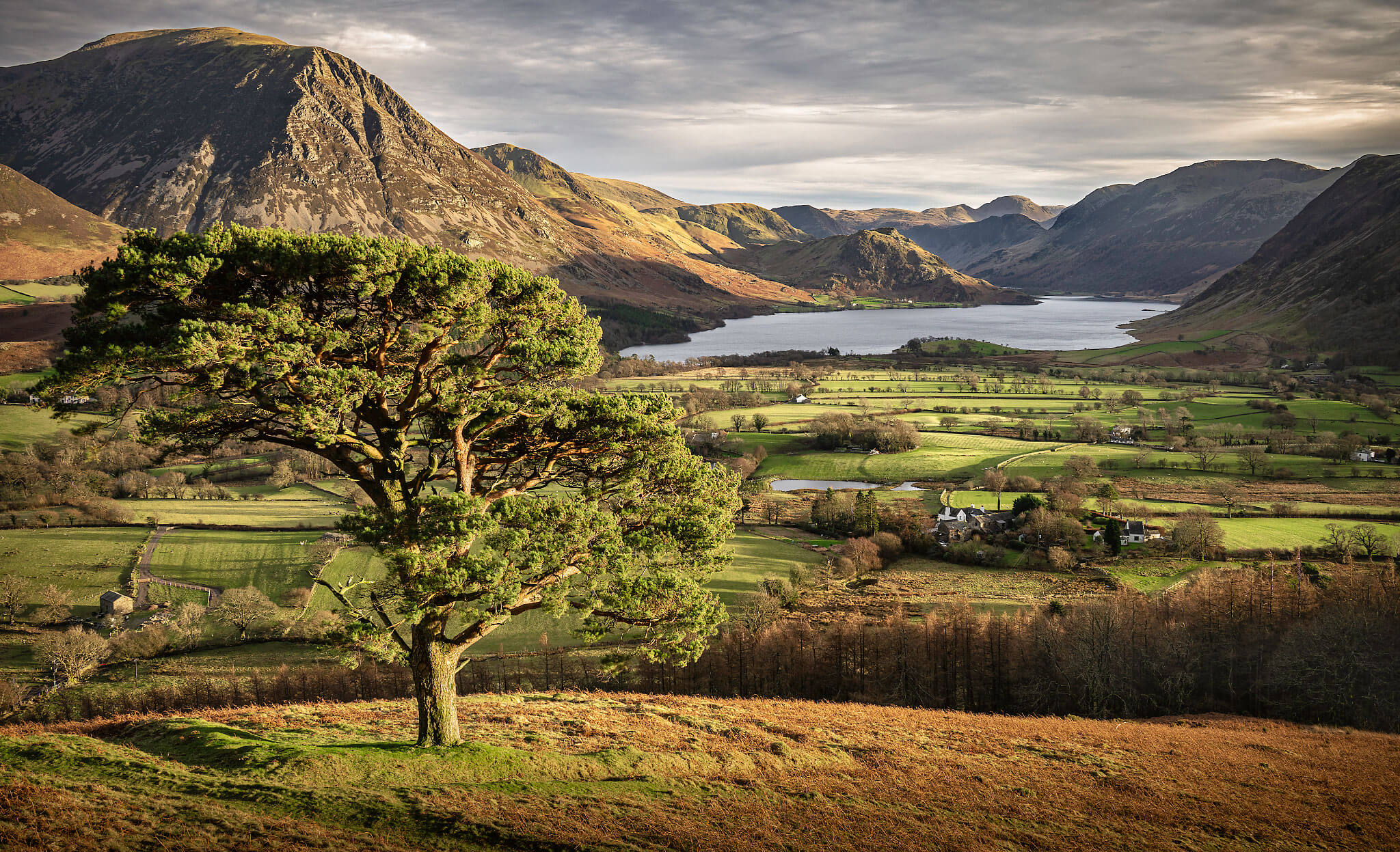 Lone Pine on Low Fell overlooking Crummock Water and The Western Fells