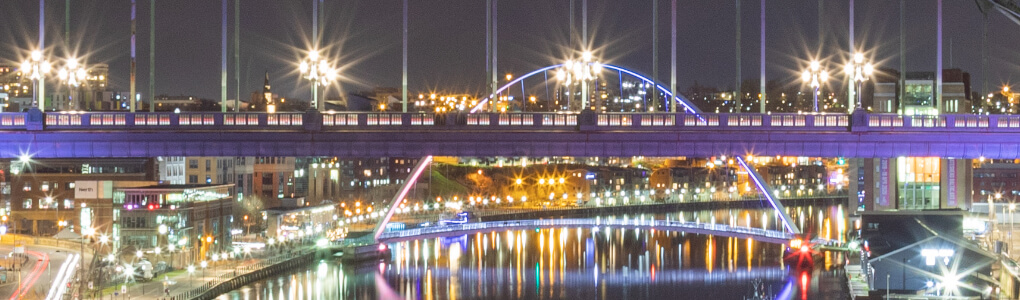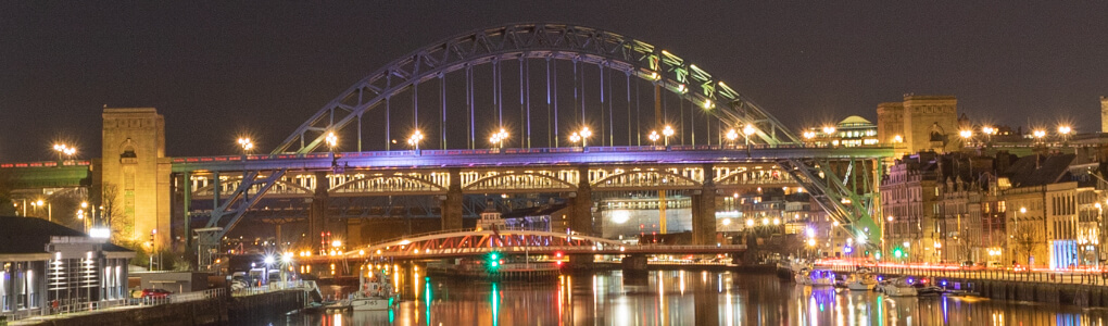 Join us for a walk around Newcastle Quayside to photograph the bridges in all their splendour at night. Learn how to set your camera for stunning photographs of the bridges and car light trails. You will be pleasantly surprised with the lights and colours that will dominate your photographs. Full instructions on settings and composition given throughout the walk.
